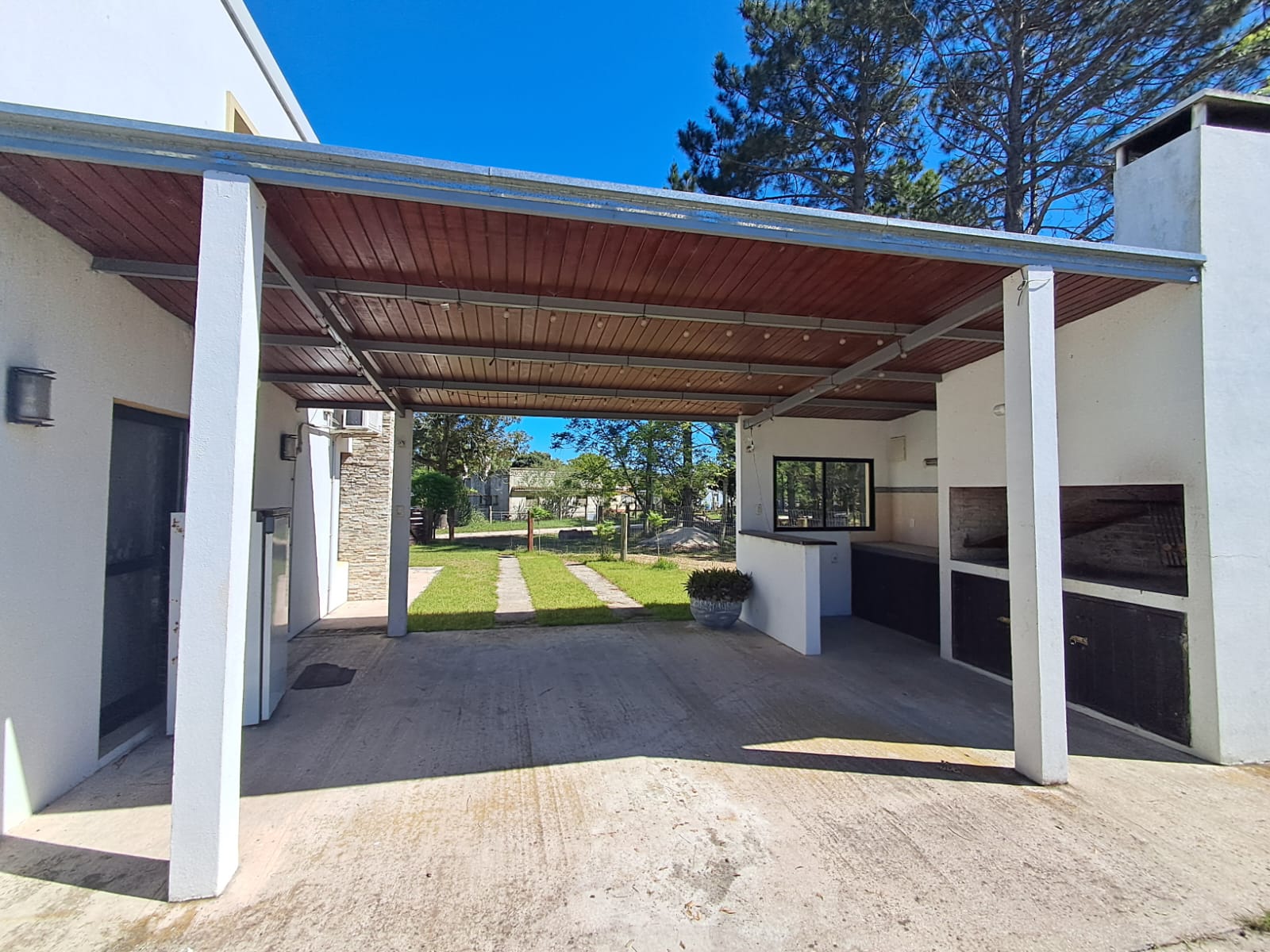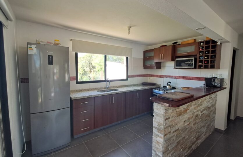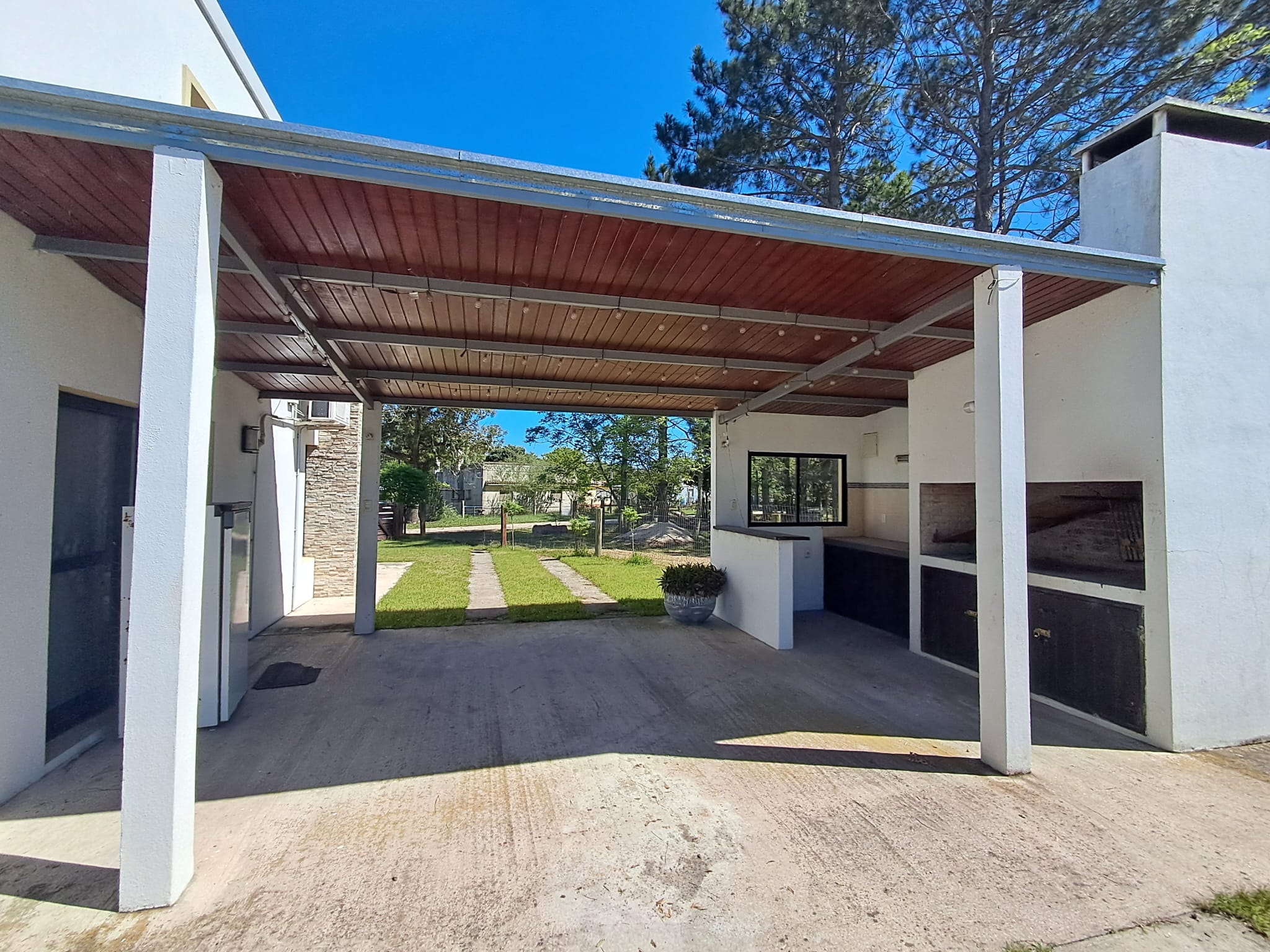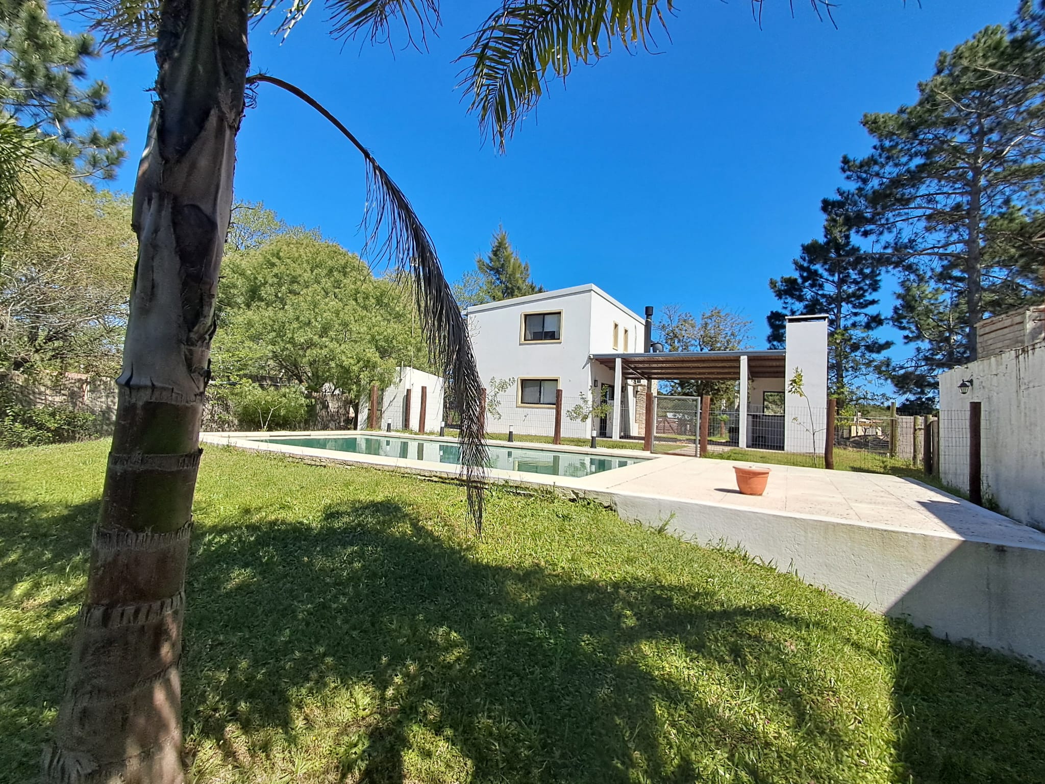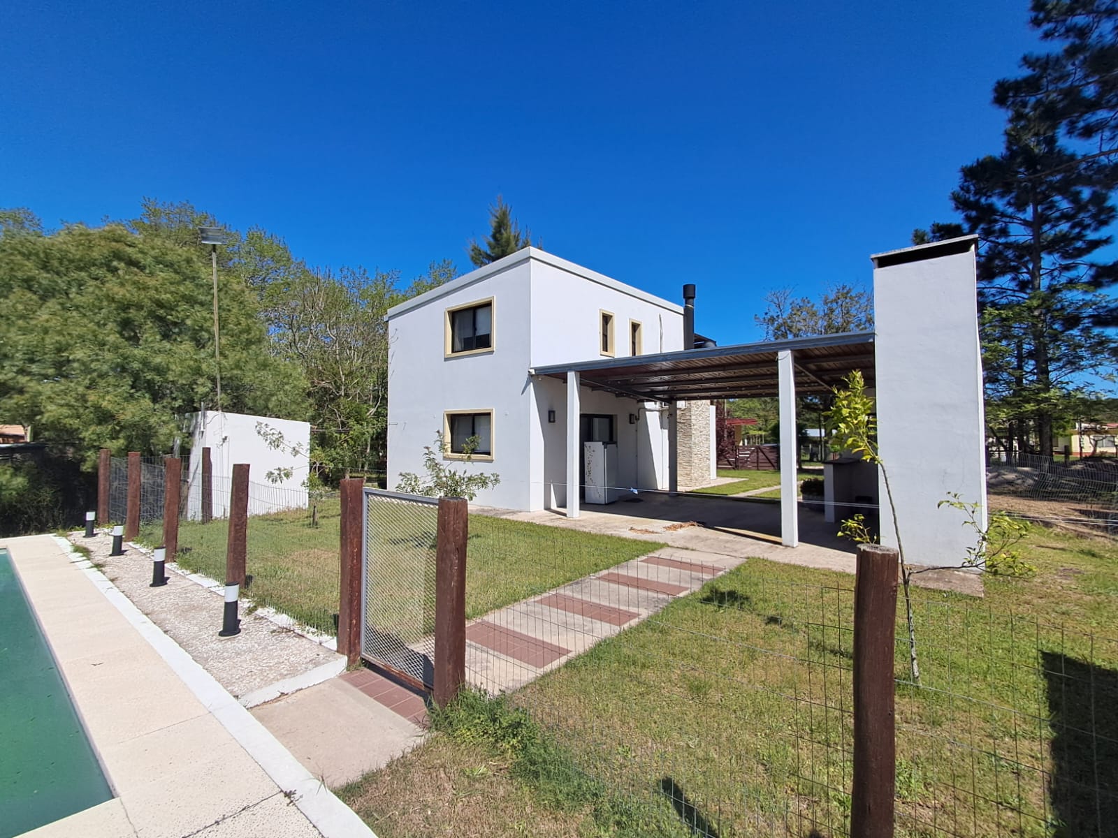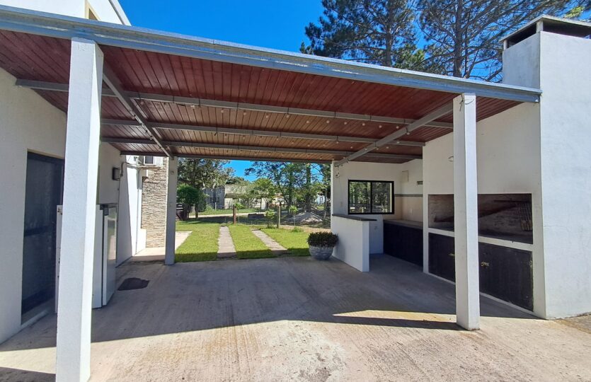 La amplia superficie de terreno permite disfrutar de piscina, churrasquera y cobertizo, ideales para el descanso y la recreación.