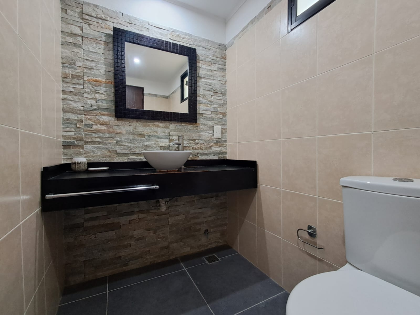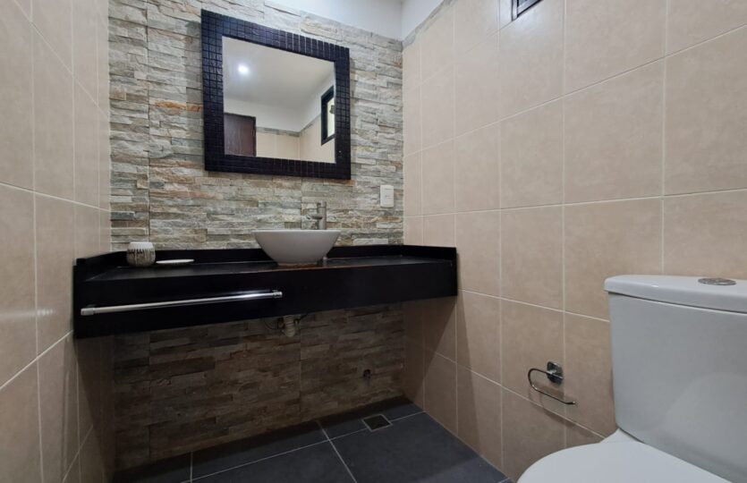 Completa este nivel un baño social, que mantiene el mismo nivel de diseño y buen gusto.